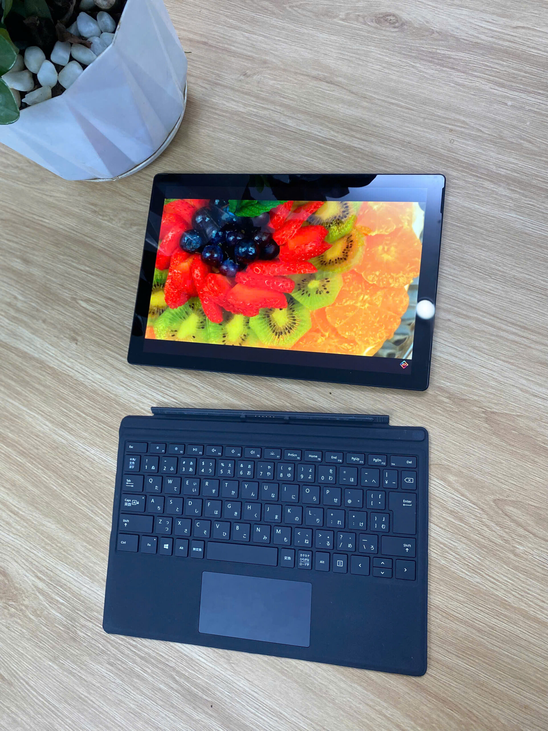 Nhìn chung thì thiết kế của Surface Pro 6 core i5 không có nhiều thay đổi so với trước đây. Vẫn là một chiếc máy tính bảng lai laptop với màn hình 12,3 inch độ phân giải 2736 x 1824. Chất lượng được hiển thị khá ấn tượng, màu sắc hài hòa, không quá rực rỡ như nhiều màn hình khác. Nếu để ý kỹ, bạn sẽ thấy các cạnh của thiết bị như bo hơi tròn hơn, đặc biệt là các phần viền được ôm tròn chứ không vát thẳng xuống như những thế hệ trước.